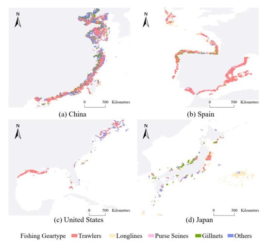 Thus, the objectives of this study were: (1) to determine the spatio-temporal changes of global fishing effort and fishing gear from 2017 to 2020; (2) to quantify the cultural and policy drivers influencing fishing effort and fishing gear through GIS spatial analyses and statistics (2017–2019); and (3) to analyze the effects of lockdown policies on fishing effort of a few representative countries (China, Spain, Japan and the US) in 2020.