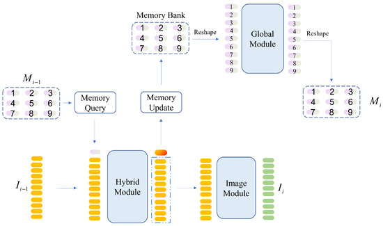 The memory mechanism aims to add alternative information to enhance the network’s representation ability. VQ-VAE [50,51] uses a memory back to quantize the latent representation of the input image. The memory mechanism was used in [52] to conduct video representation learning. The memory network was used in [53] to encode information from the past frames. MemAE [54] tackles anomaly detection in an unsupervised manner using the memory mechanism, where anomaly samples use the memory representations to reconstruct the normal samples, and the differences between them are the anomaly part. The memory mechanism was also deployed in other tasks such as multimodal data generation [55], meta-learning [56], and image classification [57].