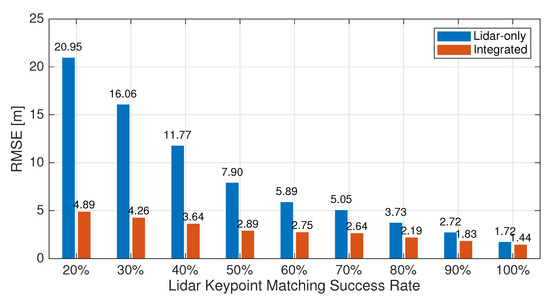 - When the keypoint matching success rate is low, as can be expected for a realistic scenario, the proposed Integrated approach provides the best accuracy while maintaining 100% availability of positioning solutions.