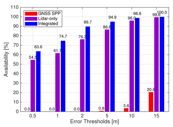 - Availability is defined as the proportion of the epochs with positioning solutions under a specified error threshold;