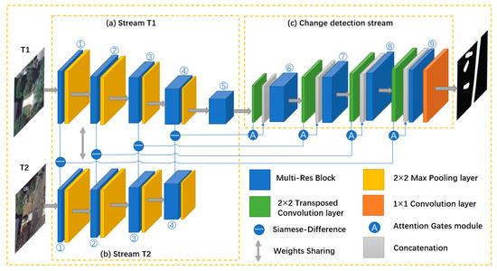 Yang, X.; Hu, L.; Zhang, Y.; Li, Y. MRA-SNet: Siamese Networks of Multiscale Residual and Attention for Change Detection in High-Resolution Remote Sensing Images. Remote Sens. 2021, 13, 4528. https://doi.org/10.3390/rs13224528