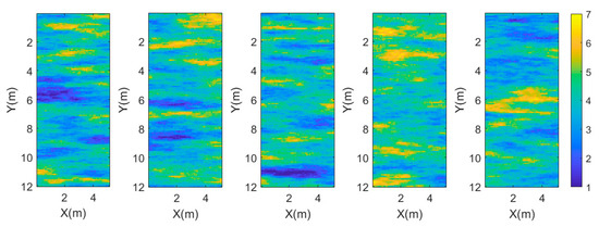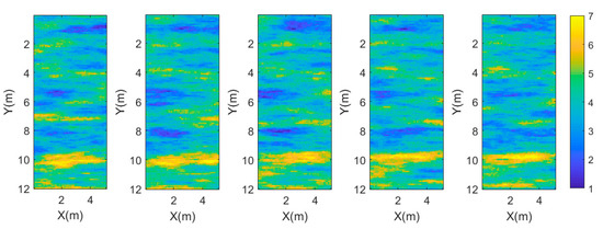 Before the inversion, we first needed to sample the priori probability density that generated the reference model . Figure 5 shows five sampling models generated from the priori probability density; each of them is different.