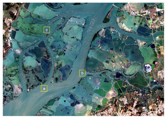 It is difficult to remove this water because the suspended sediment is too high. Finally, we use the object-oriented area attributes to remove the sea water. In this process, sea water with an area smaller than 43 pixels or larger than 700 pixels is removed to obtain the final extraction result.