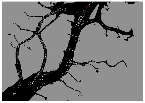 Otsu’s method mainly divides the image into a target and background according to the gray-level difference of the image and determines the optimal threshold by obtaining the inter-class variance between the ground objects. The algorithm is efficient and fast, and the execution efficiency is high [31,32]. The calculation formula is as shown in (19), where and are the probability that the image pixels are divided into the target pixels and the background pixels and and are the average gray-level values of the image pixels divided into target pixels and the background pixels.