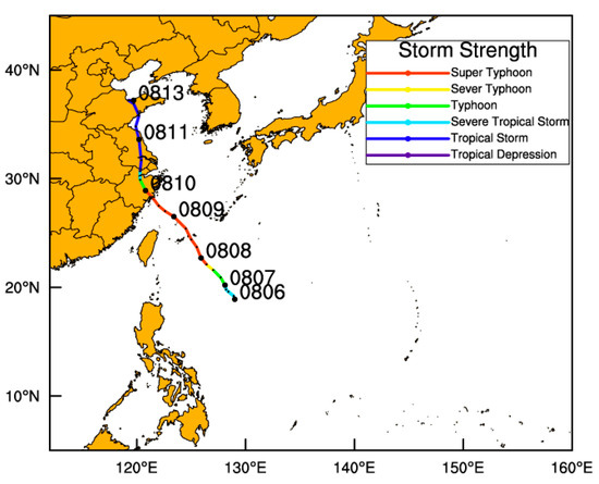 The numerical weather prediction (NWP) models are largely related to initial conditions and the physical parameterization schemes applied in the model [1]. On the one hand, different schemes are introduced into the dynamic framework of the numerical model to describe the weather process at various scales reasonably. In order to simulate a typhoon’s track and intensity accurately, the interaction between multitemporal and spatial scale weather systems should be considered in the model, such as the mutual effect of the subgrid physical processes and the large-scale background environment [2]. On the other hand, a model’s initial field is affected by the quality of observation data [3,4,5,6,7,8,9,10,11,12] and the data assimilation approaches. Previously, it was mainly provided with conventional data, which have low resolution, large errors, and other problems. Currently, unconventional data from satellites and other instruments are used more widely [13,14]. Along with the development of satellite technology, the accuracy of unconventional data continues to improve, with the advantages of wide coverage, intensive spatial distribution, and high temporal resolution. However, with abundant high-quality observations, how to utilize them more rationally to enhance the numerical prediction skill remains a great challenge.