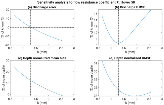 Rather than specifying k a priori, remotely sensed surface velocities can be combined with measurements of Q made directly in the field or recorded at a gaging station and used to estimate k. This approach involves using an optimization algorithm to iteratively vary k so as to minimize the difference between the measured discharge Q and the discharge calculated from remotely sensed data via Equation (8) for a single cross-section