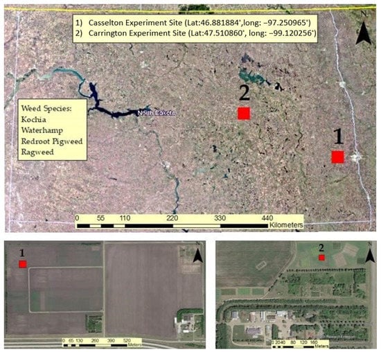 The experiment was conducted at two locations. One location was the NDSU Agronomy Seed Farm in Casselton, ND, USA while the other was conducted at the NDSU Research and Extension Center in Carrington, ND, USA (