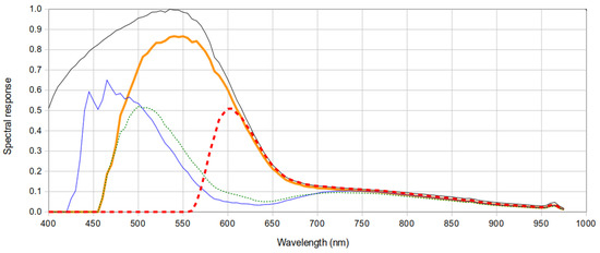 - Kyba, C.C.M.; Ruhtz, T.; Fischer, J.; Hölker, F. Red is the new black: How the colour of urban skyglow varies with cloud cover. Mon. Not. R. Astron. Soc. 2012, 425, 701–708. [Google Scholar] [CrossRef] [Green Version]