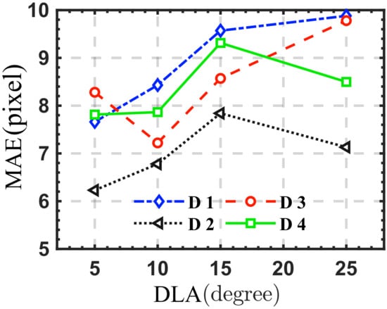 MAE results in different districts under different look angle differences. (The label DLA in the abscissa stands for Difference in Look Angles).