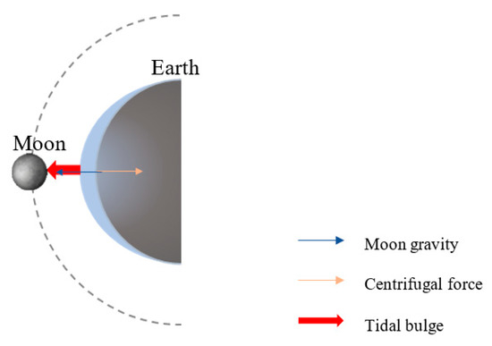 - Center for Operational Oceanographic Products and Services (CO-OPS) Detailed Explanation of Differential Tide Producing Forces. Available online: https://tidesandcurrents.noaa.gov/restles3.html#:~:text=The%20Effect%20of%20Centrifugal%20Force,from%20the%20center%20of%20revolution (accessed on 16 November 2021).
