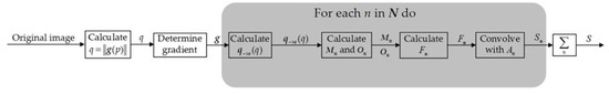 FGMRST is calculated at one or more radii nN, where N is the set of radii of the radially symmetric features to be detected. The gradient modulus of pixel p is calculated to obtain ||g(p)||. For the convenience of subsequent expression, let:
