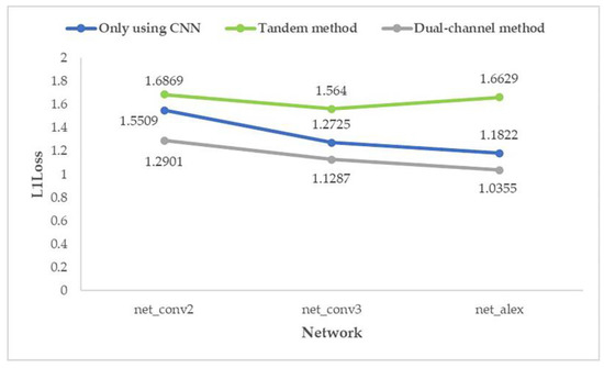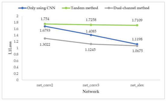 • In the shallowest network (net_conv2), the average prediction error of the dual-channel method is reduced by 19.66% compared with the ordinary CNN method. In the deeper network (net_conv3), the average prediction error is reduced by 15.73%. In the deepest network (net_alex), the average prediction error is reduced by 8.54%. It shows that the proposed method is still better than the method using only CNN when the number of network layers increases.