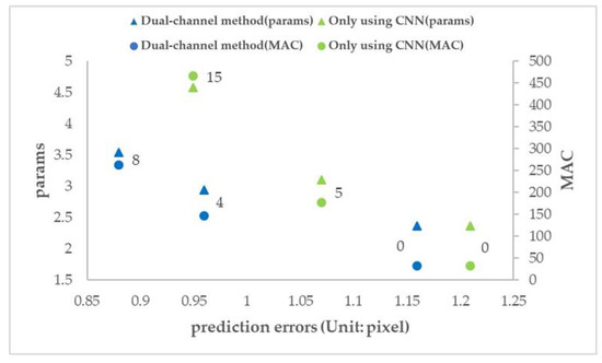 • When the number of additional convolution layers is 0, the number of parameters and computation (params and MAC) of the two methods are the same, but the prediction error of the dual-channel method is less than that of the ordinary CNN method.