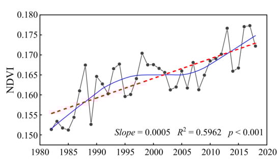 - Xu, Y.; Yang, J.; Chen, Y. NDVI-based vegetation responses to climate change in an arid area of China. Theor. Appl. Climatol. 2016, 126, 213–222. [Google Scholar] [CrossRef]