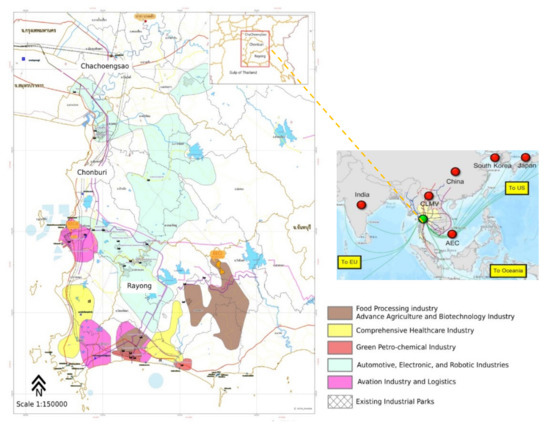 - Eastern Economic Corridor (EEC) Office. Eastern Economic Corridor (EEC). 2018. Available online: https://www.eeco.or.th/en (accessed on 7 November 2018).