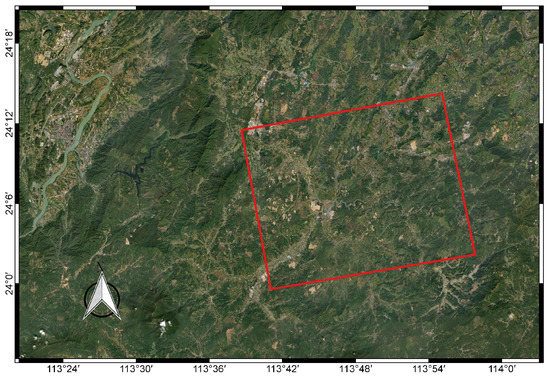 In this experiment, we used the area of Foshan, Guangdong Province, in the southeast of China, which is outlined by a red rectangle in Figure 1.