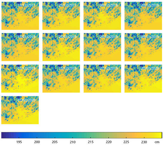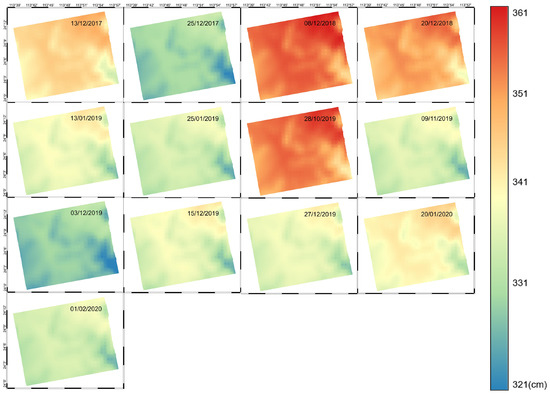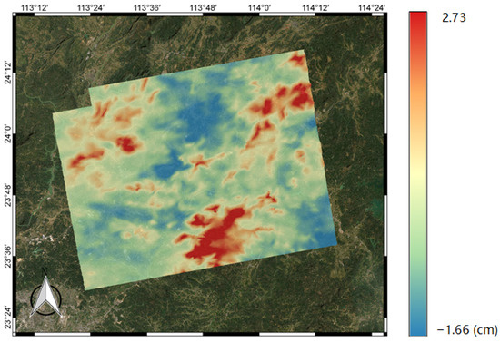 We assumed that there was nearly no surface deformation in 12 days. Therefore, we calculated the respective RMSE using Equation (17) to evaluate the mitigating impact of different corrections. The values of RMSE in the one-way slant distance are shown in Table A1.