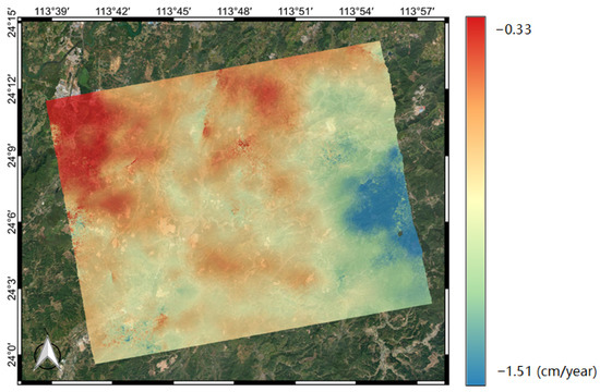 The linear deformation rate of the experimental area with the small baseline subset (SBAS) method.
