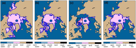 - Meier, W.N.; Fetterer, F.; Windnagel, A.K.; Stewart, J.S. NOAA/NSIDC Climate Data Record of Passive Microwave Sea Ice Concentration, Version 4; NOAA/NSIDC: Boulder, CO, USA, 2021. [CrossRef]