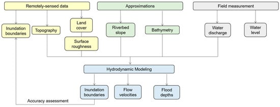 The schematic methodology incorporating remote sensing approach and hydrodynamic modeling.