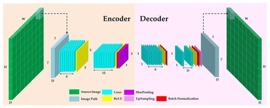 where and are the deltas of the hidden states and the reconstruction, respectively. The weights are then updated using the optimization method [81]. Finally, the CAE parameters can be calculated once the loss function convergence is achieved. The output feature maps of the encoder block are considered as the deep features. In this work, batch normalization (BN) [82] was applied to tackle the internal covariant shift phenomenon and improve the performance of the network through normalization of the input layer by rescaling and re-centering [83]. The BN helps the network learn faster as well as increase accuracy [84].