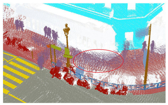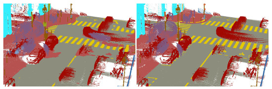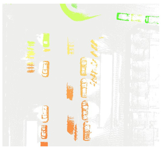 - Behley, J.; Garbade, M.; Milioto, A.; Quenzel, J.; Behnke, S.; Stachniss, C.; Gall, J. SemanticKITTI: A Dataset for Semantic Scene Understanding of LiDAR Sequences. In Proceedings of the 2019 IEEE/CVF International Conference on Computer Vision (ICCV), Seoul, Korea, 27–28 October 2019; pp. 9296–9306. [Google Scholar] [CrossRef] [Green Version]