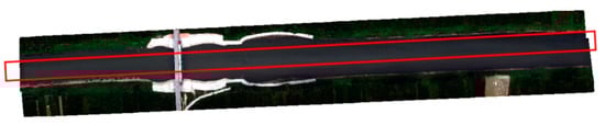 To get a seamless mosaicked image, the accurate tie points in the overlapped area between pairs of images should be extracted and the geometric differences of the tie points should be minimized during image registration. An algorithm was proposed to automatically combine multiple overlapping images for a scene by a 2-dimensional fast fourier transform to estimate the displacement between image pairs by accounting for image rotation and scale variation. In this research work, the selection of a suitable hyperspectral band is critical for best co-registration to deal with the data volume and processing complexity of hundreds of bands; due to the limitation of the computer’s computational capabilities, the Pearson correlation coefficient (PCC) was computed for each band in the hypercube pair by the iterating step first, then the band with the highest PCC value was retained to the mosaicking process []. A modified Speeded-Up Robust Features matching method was used to find the tie points between the partially rectified hyperspectral images and the RGB orthophoto to mosaic the UAV images for agricultural monitoring []. The above two methods were validated on frame images for which the overlap rate is high. Whereas, in push-broom hyperspectral image acquisition, sufficient overlaps between adjacent images may not be ensured, especially when data collection efficiency is a priority for a large study area with the constraint of UAV battery duration. Moreover, in some natural environments where the target objects are mainly water and forest, there exist even less texture or distinct features that can be detected as the tie points due to the homogeneity of the spectral signatures. Although existing relative transformation models and resampling methods have been analyzed for narrow overlapped image mosaicking, the lack of tie points and weak stereo geometry makes it difficult to get accurately geo-registered images [].