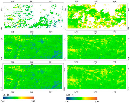 - Yao, R.; Wang, L.; Huang, X.; Sun, L.; Chen, R.; Wu, X.; Zhang, W.; Niu, Z. A Robust Method for Filling the Gaps in MODIS and VIIRS Land Surface Temperature Data. IEEE Trans. Geosci. Remote Sens. 2021. [Google Scholar] [CrossRef]