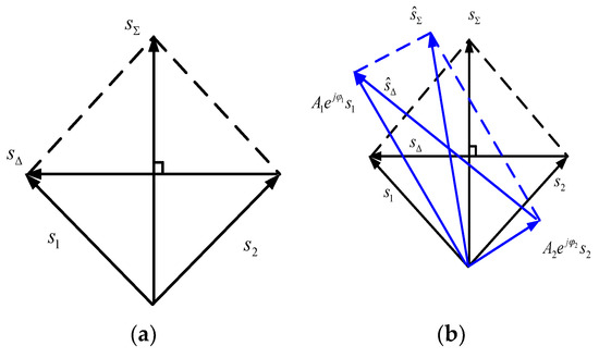 Then, by substituting Equation (11) into Equations (A5) and (A6), the final sum channel signal and the difference channel signal can be denoted as