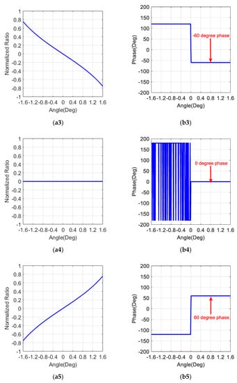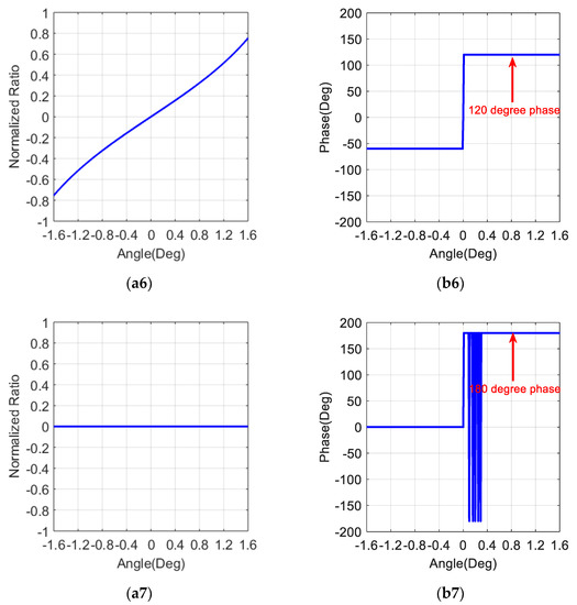 To simplify Equations (A7) and (A8) further, Equations (12) and (13) can be acquired. Then, by dividing the difference channel signal by the sum channel signal, we can obtain