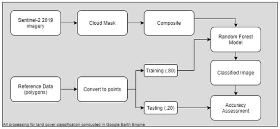 Flowchart showing the workflow used for the land cover classification in Google Earth Engine.