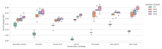 - Seven geolocation methods—boundary points, centroid, convex hull, corner, hull mean, plot points, and plot mean;