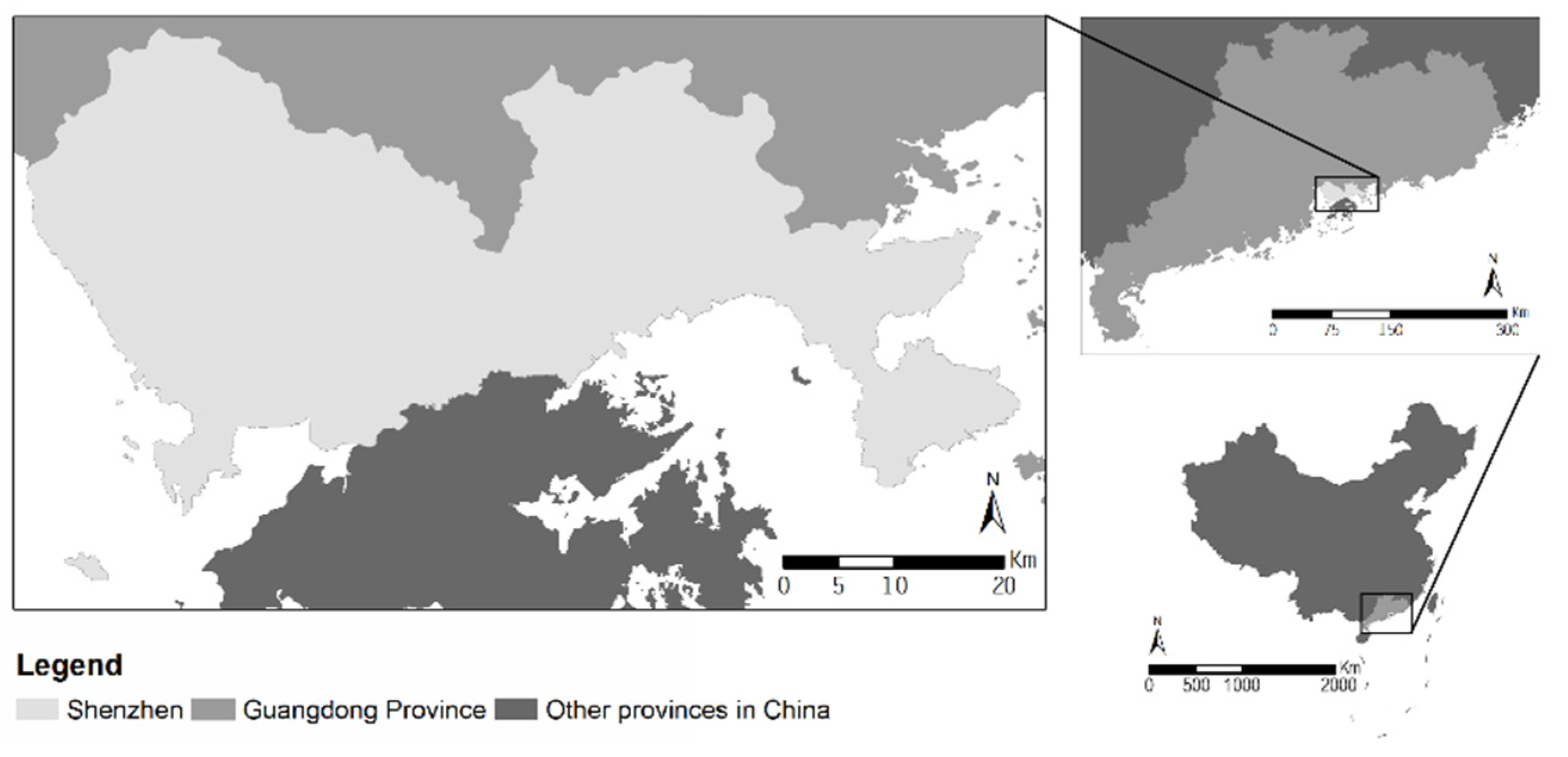 - The POI dataset includes 991,362 POIs in Shenzhen, China. The dataset was retrieved from Gaode Map (https://lbs.amap.com/api/webservice/guide/, accessed on 19 January 2021), one of the most popular map platforms in China, and the POIs are labelled with 20 primary classifications and 984 secondary classifications.