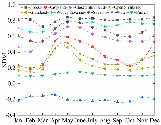 The classification system in this paper refers to the first land cover approach in the MCD12Q1 data (IGBP’s global vegetation classification scheme) and the project needs to divide land types into nine land classes: forest, cropland, water, barren, closed shrubland, open shrubland, woody savanna, savanna, and grassland.