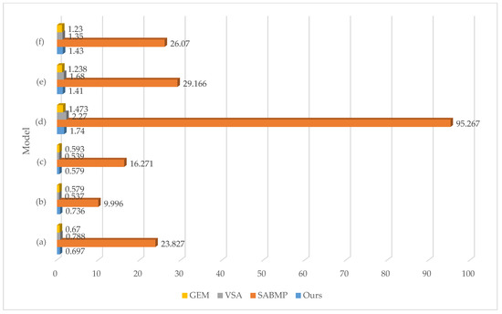 To show the effect of efficiency optimization more intuitively, we compared the time consumption of the SABMP method, GEM method, VSA method, and the method presented in this paper in Figure 15. The running time of our method, as a polygonization method, is close to that of the GEM method and VSA method and is much smaller than that of SABMP.