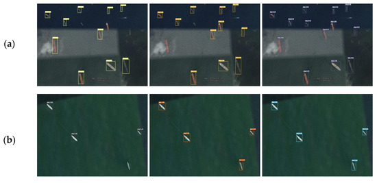 The SSDD dataset is one of the main test datasets. Some data are shown in Figure 6, which shows small ship targets in large sea areas, blurred ship objects, ship targets in coastal areas, and ship targets in some complex background similar to themselves. Detection in these images poses challenges in accurately identifying ship targets.
