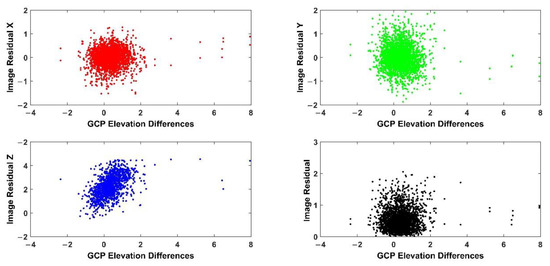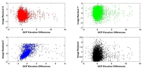 4.4. Coupling Differences between Image Residuals and Vertical Errors