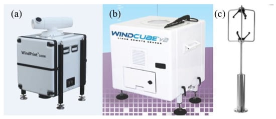 Instruments used for the joint observations. (a) Windprint S4000 DWL, (b) Windcube V2 DWL, and (c) WindMaster Pro three-dimensional ultrasonic anemometer.