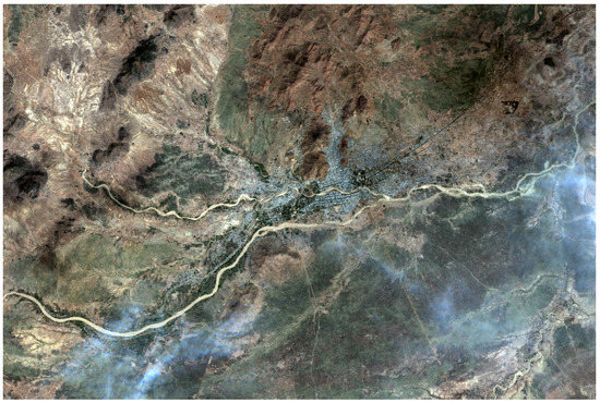 For example, Figure 4 represents the locality of Maroua in the Cameroon view from the satellite Sentinel 2. The image is in a true color (RGB) representation. One can observe the presence of a light cloud cover.