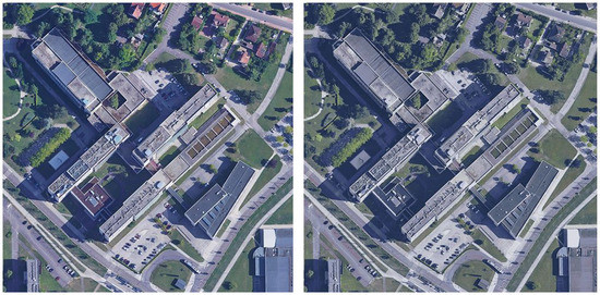 Campus of the University of Burgundy in Dijon with two spatial resolutions; (left): 0.1 m and (right): 1 m.