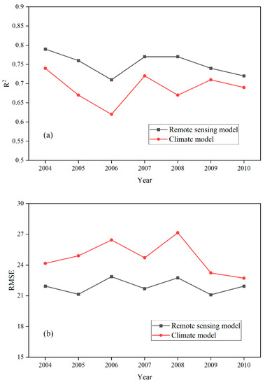 2.1.1. Comparison of the Remote Sensing Model and Climate Model