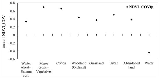 Annual variation coefficient of NDVI time-series profile (NDVI_COVannual) corresponding to each land cover type.