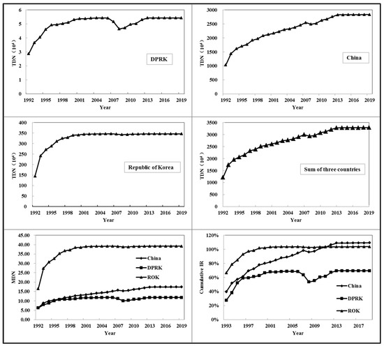 Variation of TDN, MDN, and IR in DPRK, China, and ROK.