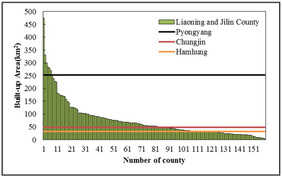 Comparison of urban built-up area between DPRK and China’s Jilin and Liaoning.