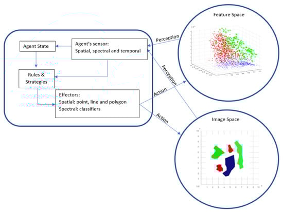 - Borna, K.; Moore, A.B.; Sirguey, P. Towards a vector agent modelling approach for remote sensing image classification. J. Spat. Sci. 2014, 59, 283–296. [Google Scholar] [CrossRef]
