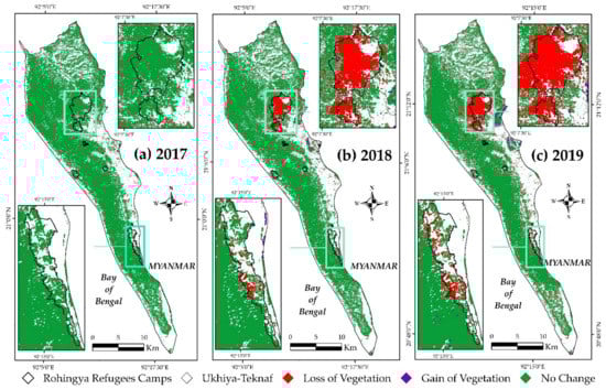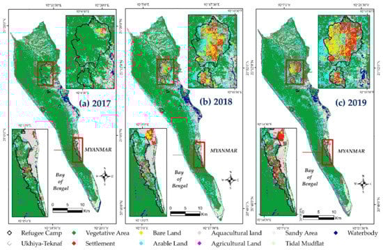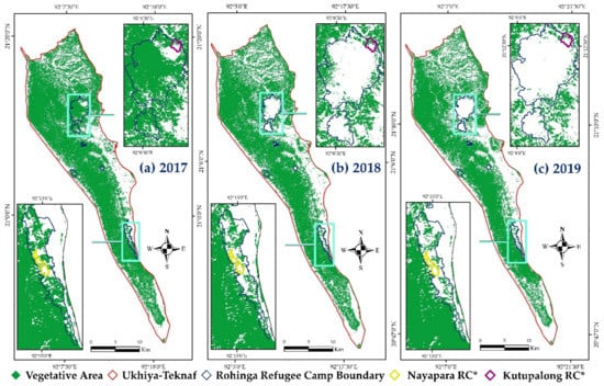APA StyleKarim, M. F., & Zhang, X. (2021). Analysis of Vegetative Cover Vulnerability in Rohingya Refugee Camps of Bangladesh Utilizing Landsat and Per Capita Greening Area (PCGA) Datasets. Remote Sensing, 13(23), 4922. https://doi.org/10.3390/rs13234922