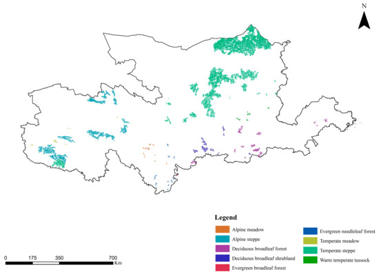 3.2. The Construction Process and Results of Vegetation Ecospatial Network in the YRB