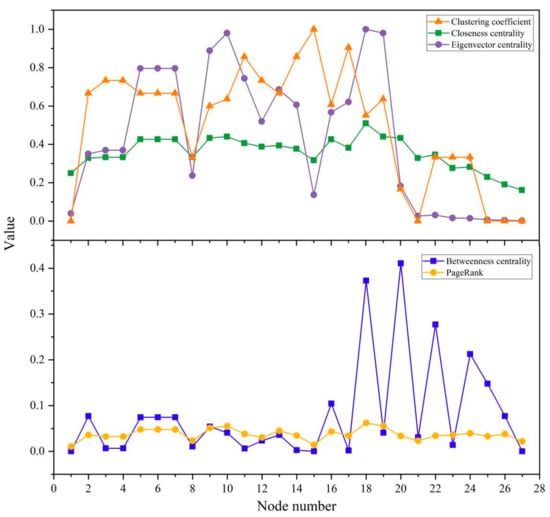 | PageRank | Rank of the importance of ecological nodes, evolved from eigenvector centrality | Similar to eigenvector centrality, it is an indicator used to evaluate the importance of nodes | [44] | |