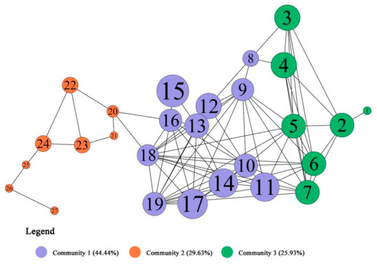 - Newman, M.E.J. Modularity and community structure in networks. Proc. Natl. Acad. Sci. USA 2006, 103, 8577–8582. [Google Scholar] [CrossRef] [PubMed] [Green Version]