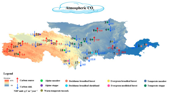 - Gu, F.; Zhang, Y.; Huang, M.; Tao, B.; Guo, R.; Yan, C. Effects of climate warming on net primary productivity in China during 1961–2010. Ecol. Evol. 2017, 7, 6736–6746. [Google Scholar] [CrossRef]